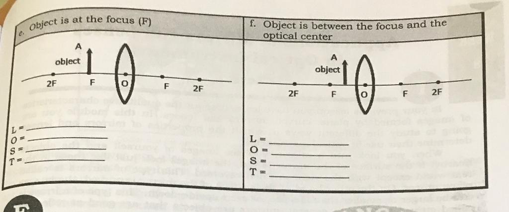 image at different positions of the object from the lens