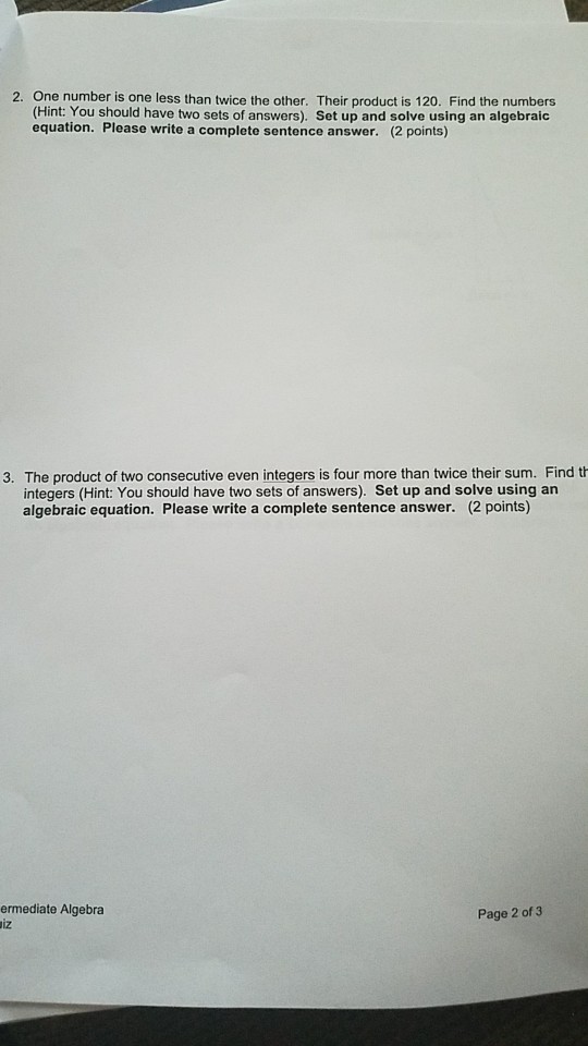 one less than twice a number