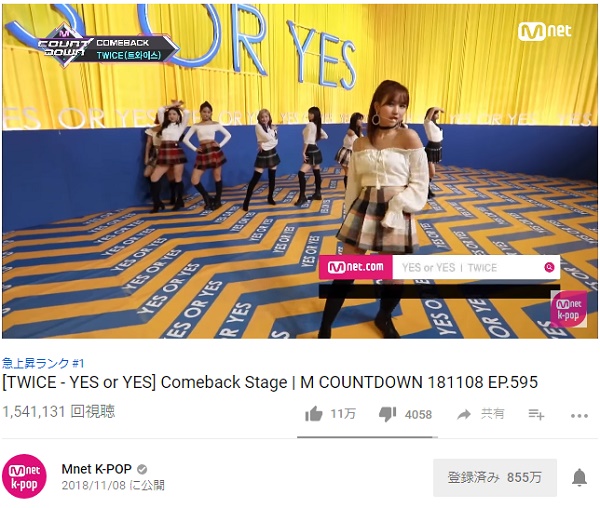 innolifeニュース k pop twice yes or yes mv youtubeで視聴回数1億回突破