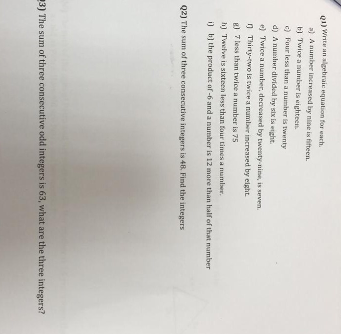 write an equation and solve twice a number increased by 3 is 7
