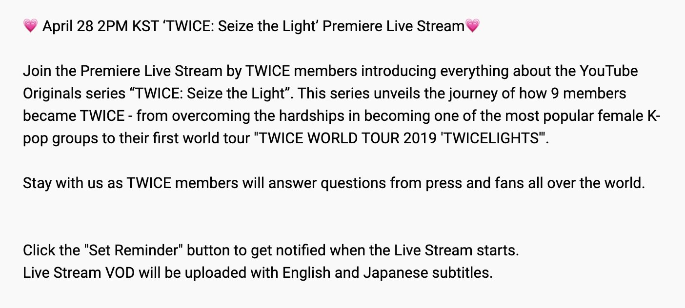 트와이스 seize the light premiere live stream 4 28 2pm kst twice youtube channel twice 트와이스 ㅤ amino